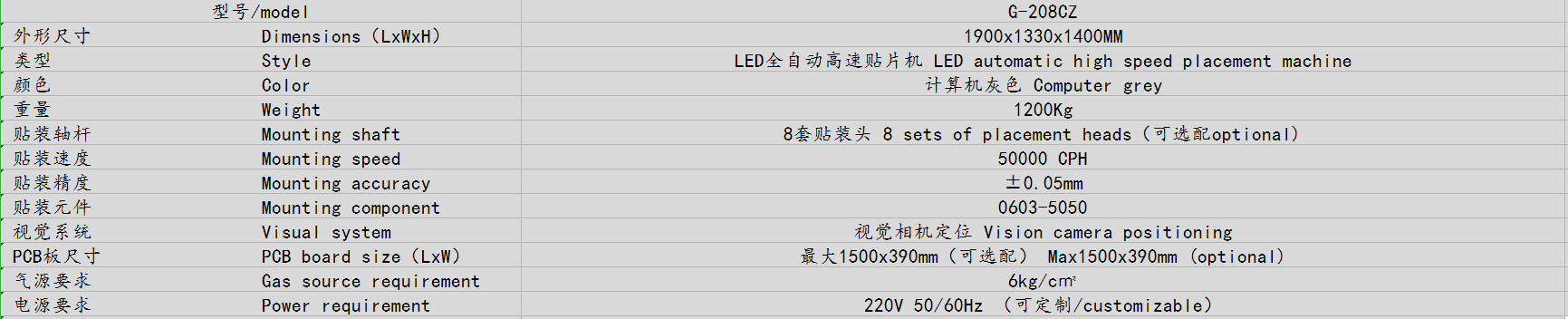 12. 可貼裝電路板最大面積1500MM*390MM