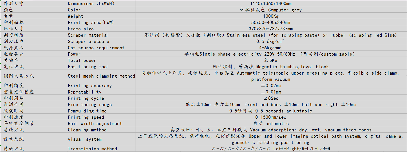實(shí)現(xiàn)各種尺寸網(wǎng)框的印刷,并可實(shí)現(xiàn)在生產(chǎn)過程中的快速更換機(jī)種。