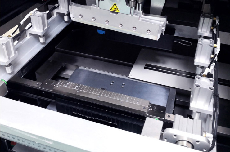 可拆卸,可編程的柔性側(cè)夾裝置,針對軟板,彎曲變形的PCB,進(jìn)行獨(dú)特的頂部壓平,通過軟件編程可自動伸縮,不影響錫膏厚度。
