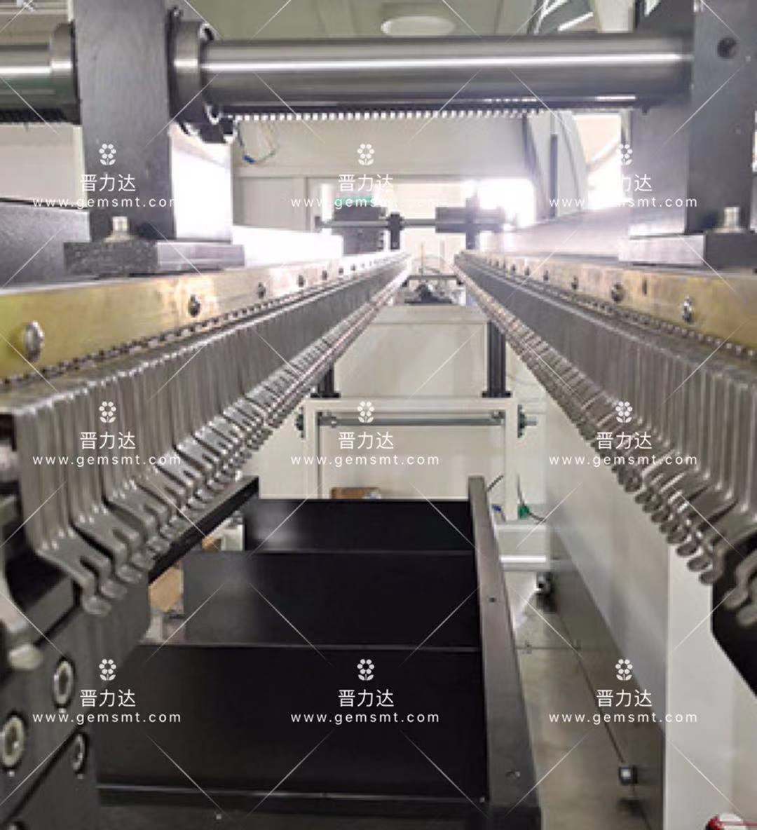 3、2011年3月份 江門金萊特電器股份有限公司購買我司15臺型波峰焊,設備管理人員反饋鈦下垂,經工程師上門了解后得知客戶目前研發重型壓器板15KG/塊,長期生產導鈦爪和鋼扁磨損嚴重,我司了解后所有波峰焊由行業通用3MM不銹鋼扁條改進為5MM加厚黃銅扁條,黃銅的特性是減少鈦爪的摩擦和磨損,減少傳動噪音。