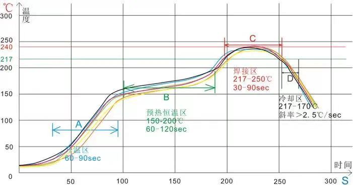保溫階段,主要目的是使回流焊爐膛內PCB板及各元器件的溫度穩定,使元件溫度保持一致。