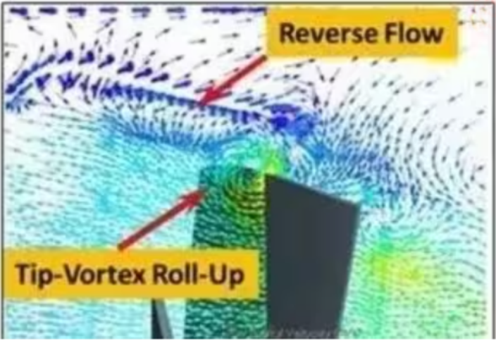 1,風扇葉片旋轉時,葉尖線速度最大,形成強離心氣流集中于外圍;而中心區域線速度低,氣壓梯度小,導致熱風明顯減弱(物理特性),類似飛機翼尖渦流原理,中心形成低壓區,故由于風葉結構的限制,導致溫區橫向溫差大。