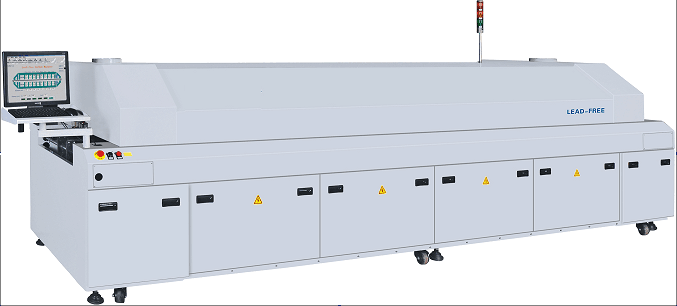 回流焊是SMT三大安裝工藝之一。回流焊主要用于焊接粘貼元件的電路板。焊膏通過加熱熔化,芯片組件和電路板墊熔合在一起。再將焊膏通過回流焊冷卻,將組件與焊盤熔合在一起。回流焊的結構