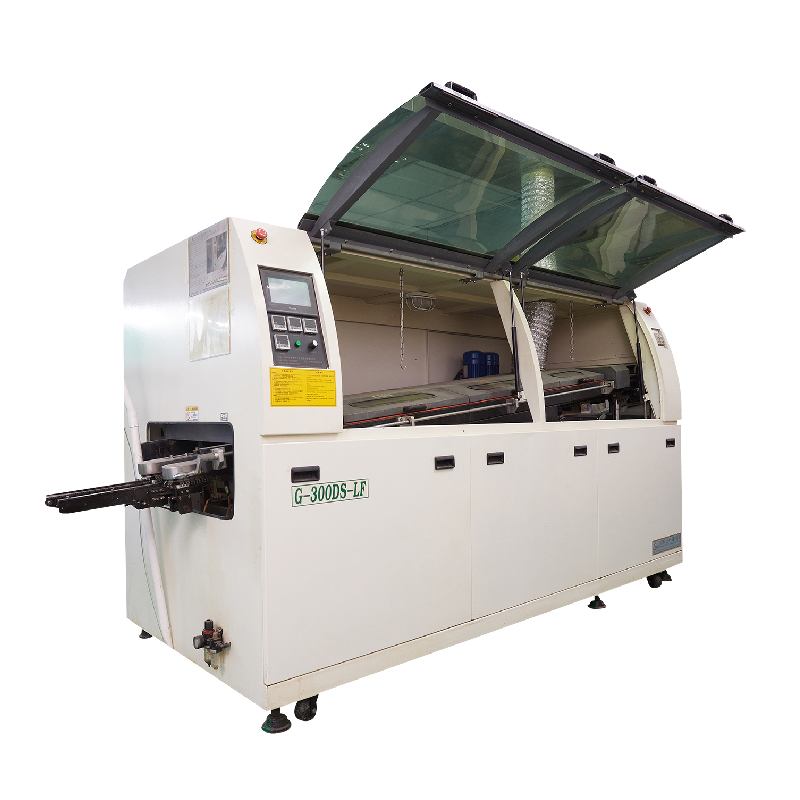 波峰焊錫機(jī)是在泵壓作用下,使液態(tài)焊料表面形成特定形狀的焊料波峰的一種工藝。當(dāng)插入組件以固定角度通過(guò)焊料波時(shí),焊點(diǎn)形成在銷焊區(qū)域。在鏈?zhǔn)捷斔蜋C(jī)的傳動(dòng)過(guò)程中,首先對(duì)焊機(jī)預(yù)熱區(qū)的部件進(jìn)行預(yù)熱(部件的預(yù)熱和溫度仍由預(yù)定的溫度曲線控制)。波峰焊錫機(jī)在實(shí)際焊接中,通常控制構(gòu)件表面的預(yù)熱溫度,因此很多設(shè)備都增加了相應(yīng)的溫度檢測(cè)裝置(如紅外探測(cè)器)。預(yù)熱后,元件進(jìn)入鉛槽進(jìn)行焊接。熔池中有熔化的液體焊料。鋼浴底部的噴嘴將設(shè)置熔融焊料的波形,以便當(dāng)部件的焊接表面通過(guò)波形時(shí),它將被焊料的波形加熱。同時(shí),波峰焊錫機(jī)焊料的波形也會(huì)潤(rùn)濕焊接區(qū)域,擴(kuò)大填充范圍,最終實(shí)現(xiàn)焊接過(guò)程。如何選購(gòu)波峰焊?