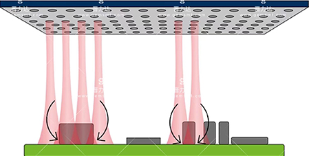 7、由于先進的孔噴嘴幾何形狀,出色的熱傳遞以及加熱模塊中可監(jiān)控的可調(diào)超壓,保證均勻和無間隙的熱傳遞到電路板。整個過程可以保證惰性工藝氣氛焊接過程,因為是封閉的系統(tǒng),沒有外部空氣進入處理室。 熱流在系統(tǒng)內(nèi)通過循環(huán)發(fā)生,即過程預熱和峰值區(qū)域的氣體被提取,清洗并從側(cè)面重新插入過濾網(wǎng)。