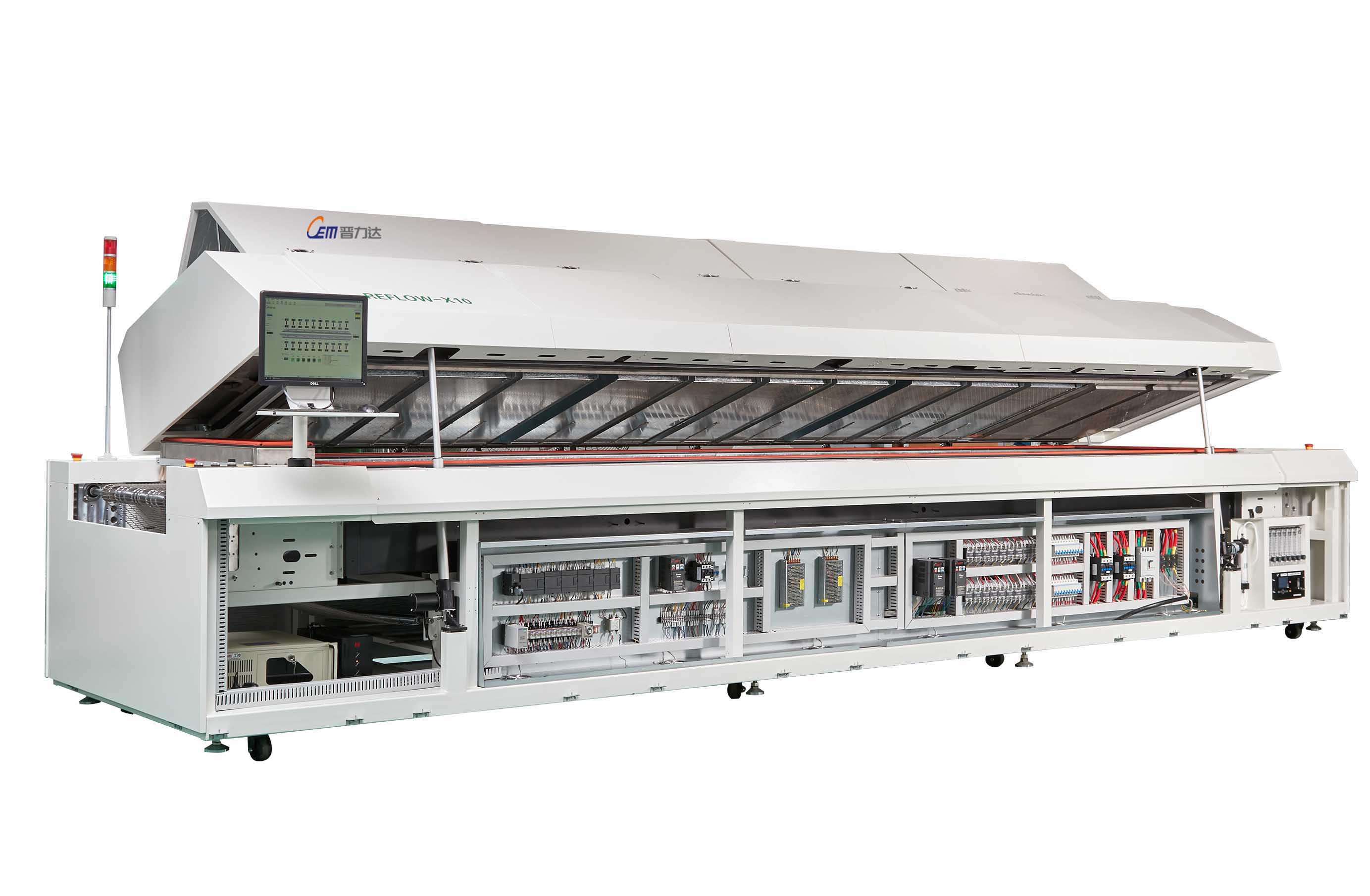 ●當前的Reflow-X系列標志著基準-總能源節(jié)省 25%,N2 消耗量減少20%。旗艦產(chǎn)品 Reflow-X12 提供 12 個區(qū)域和超過 4.6米的工藝長度
